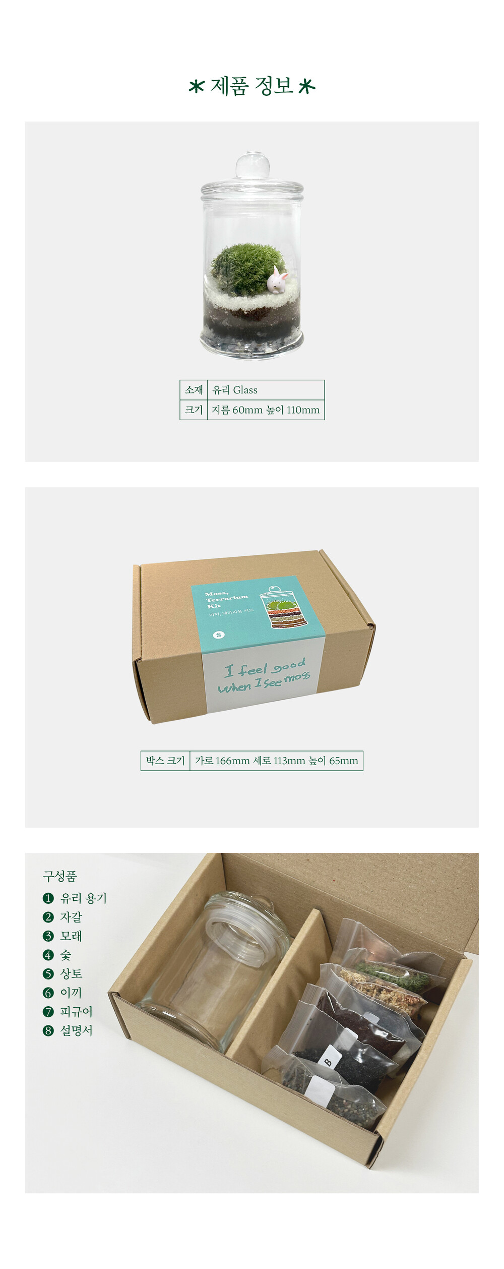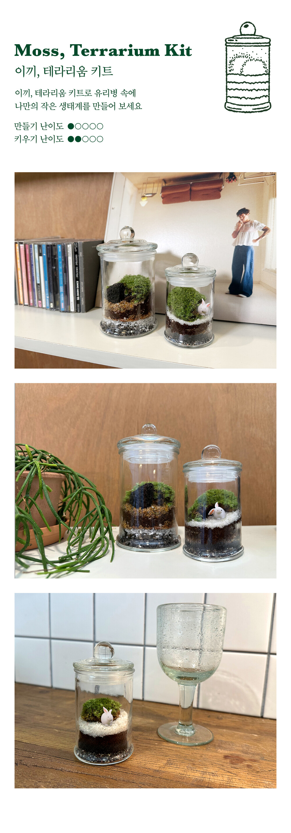 마음속 힐링 - 이끼, 테라리움 S(토끼피규어 5종중 1개 랜덤발송)