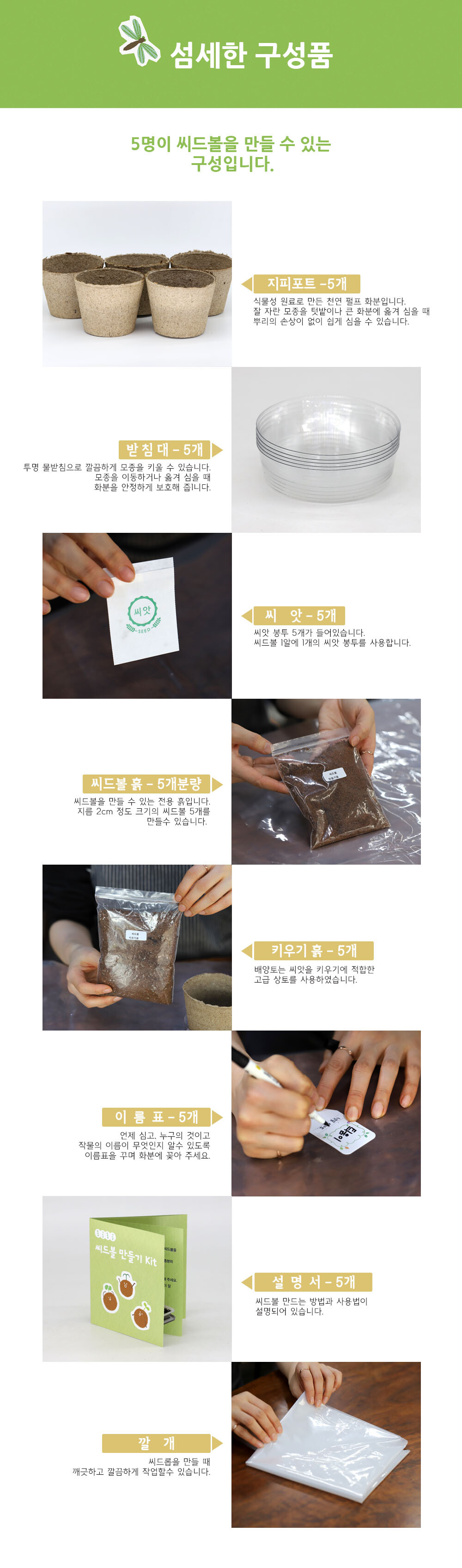 씨드볼만들기 Kit - 5인 / 10인 세트 - 방울토마토외 5종(나팔꽃,미니해바라기,봉선화,스위트바질,패랭이꽃) (택1)